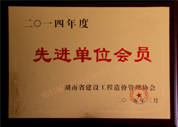 【喜訊】熱烈慶祝我司榮獲湖南省造價工程管理協(xié)會2014年度先進單位會員